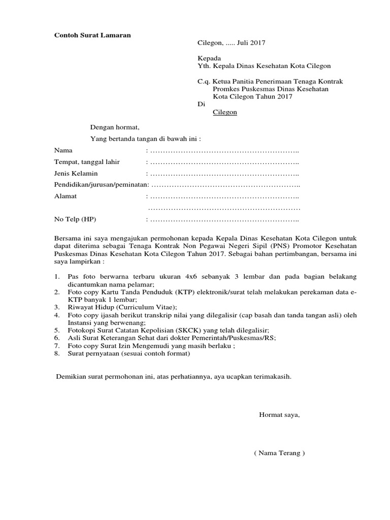 Contoh Surat Lamaran Kerja Dokter Ke Dinas Kesehatan - Contoh Surat Lamaran Dinas Kesehatan - Tips menulis surat lamaran kerja agar menjadi prioritas hrd.. Jika kamu mencari contoh surat lamaran kerja yang baik dan benar, tentu kamu akan menyadari bahwa semua surat lamaran kerja tersebut. Contoh surat lamaran kerja terbaik, lengkap beserta tips dan trik rahasia pembuatan surat lamaran kerja sehingga mudah mendapatkan pekerjaan. Di dalam surat lamaran pekerjaan, mencantumkan penghargaan juga. Dan berikut kami akan memberikan contoh surat lamaran kerja lengkap. Dengan surat lamaran pekerjaan pihak perusahaan bisa membaca dan menebak karakter dari pelamar kerja.